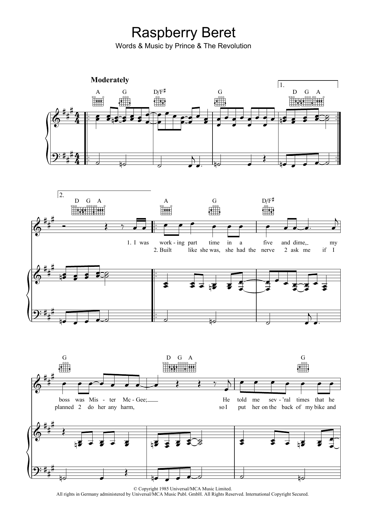 Download or print Prince Raspberry Beret sheet music, chords and digital score arranged for Guitar Tab. This Funk score includes 5 page(s).