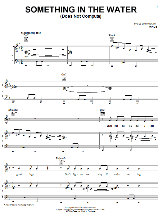 Download or print Prince Something In The Water (Does Not Compute) sheet music, chords and digital score arranged for Piano, Vocal & Guitar Chords (Right-Hand Melody). This Funk score includes 10 page(s).