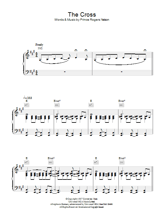 Download or print Prince The Cross sheet music, chords and digital score arranged for Guitar Tab. This Pop score includes 5 page(s).