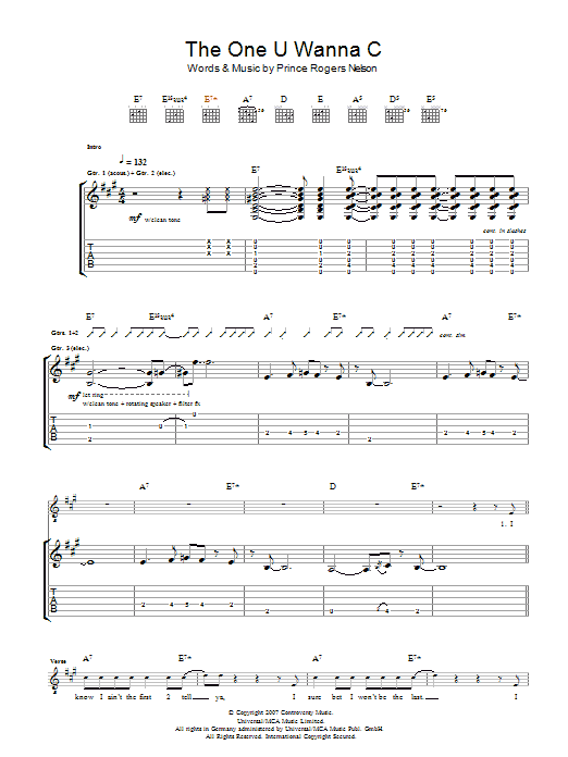 Download or print Prince The One U Wanna C sheet music, chords and digital score arranged for Piano, Vocal & Guitar Chords (Right-Hand Melody). This Pop score includes 10 page(s).