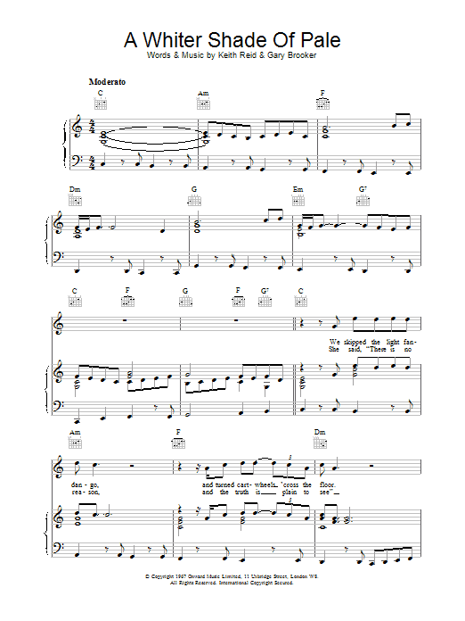 Quick facts A Whiter Shade Of Pale about digital sheet music