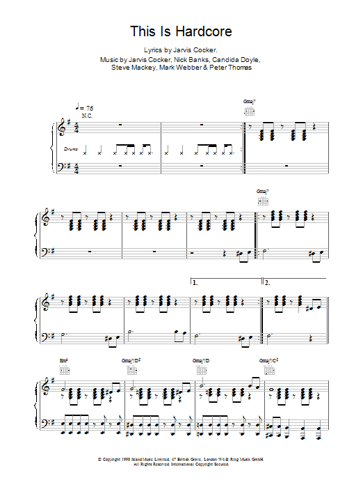 Download or print Pulp This Is Hardcore sheet music, chords and digital score arranged for Guitar Chords/Lyrics. This Pop score includes 2 page(s).