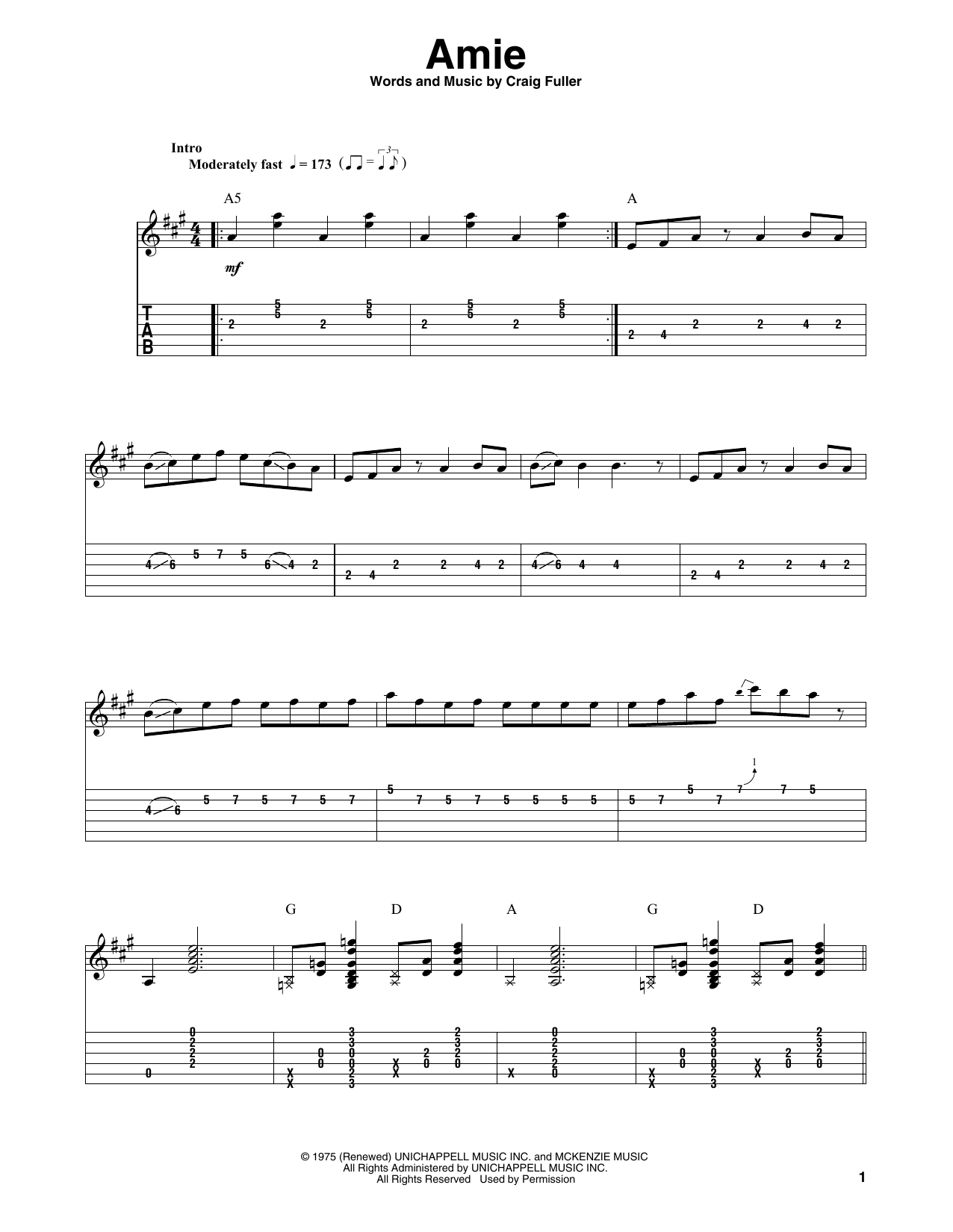 Download or print Pure Prairie League Amie sheet music, chords and digital score arranged for Solo Guitar. This Country score includes 1 page(s).