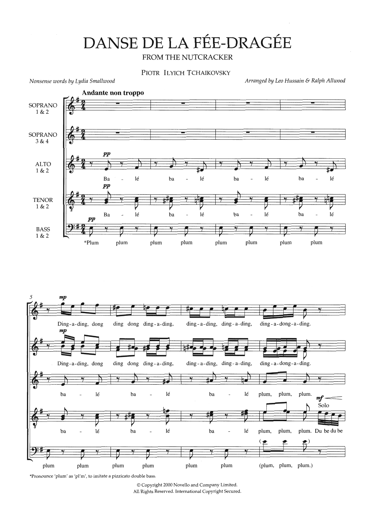 Download or print Pyotr Il'yich Tchaikovsky Dance Of The Sugar Plum Fairy (From The Nutcracker) (arr. Leo Hussain and Ralph Allwood) sheet music, chords and digital score arranged for SSATB Choir. This Classical score includes 7 page(s).