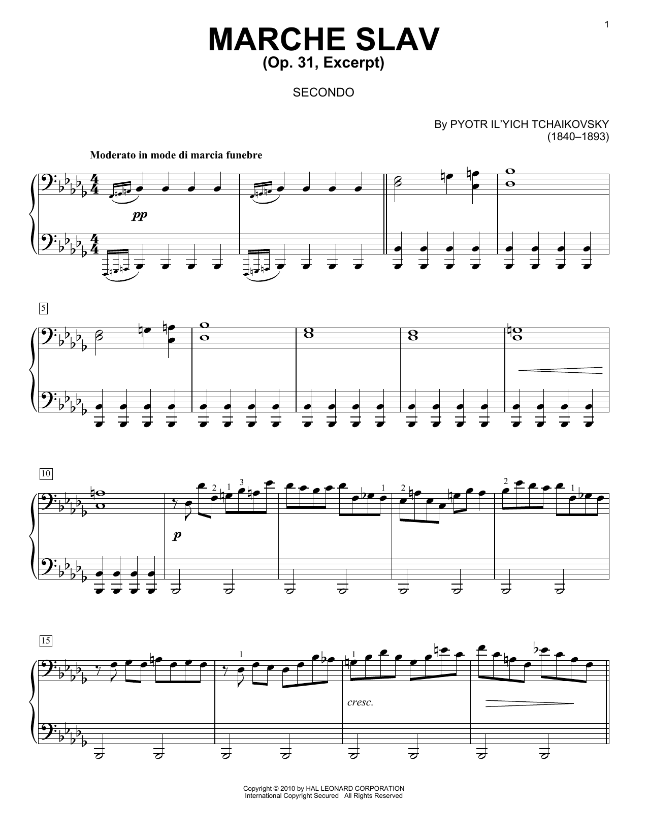 Download or print Pyotr Il'yich Tchaikovsky Marche Slav, Op. 31 sheet music, chords and digital score arranged for Piano Solo. This Classical score includes 5 page(s).