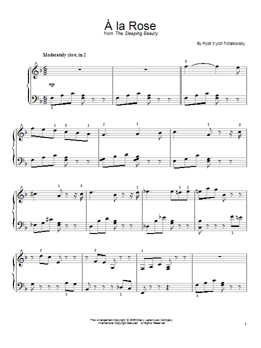 Download or print Pyotr Ilyich Tchaikovsky Adagio 'A La Rose' sheet music, chords and digital score arranged for Easy Piano. This Classical score includes 2 page(s).