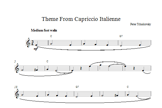 Download or print Pyotr Ilyich Tchaikovsky Capriccio Italienne sheet music, chords and digital score arranged for Flute Solo. This Classical score includes 2 page(s).