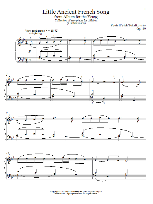Download or print Pyotr Il'yich Tchaikovsky Little Ancient French Song sheet music, chords and digital score arranged for Piano Solo. This Classical score includes 2 page(s).
