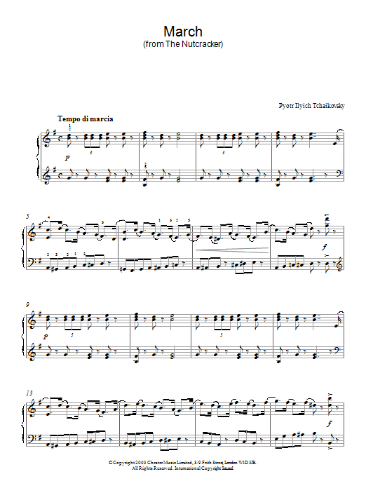 Download or print Pyotr Il'yich Tchaikovsky March (from The Nutcracker) sheet music, chords and digital score arranged for Easy Piano. This Children score includes 2 page(s).
