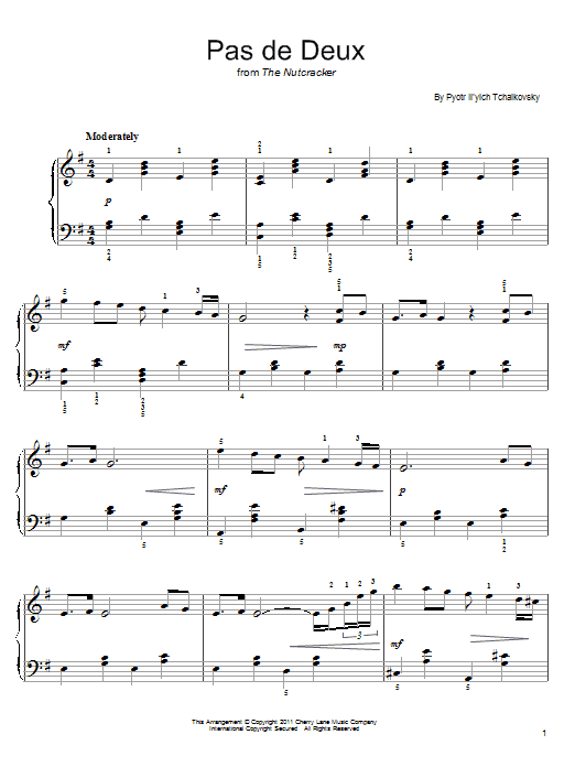Download or print Pyotr Il'yich Tchaikovsky Pas de deux sheet music, chords and digital score arranged for Easy Piano. This Children score includes 2 page(s).