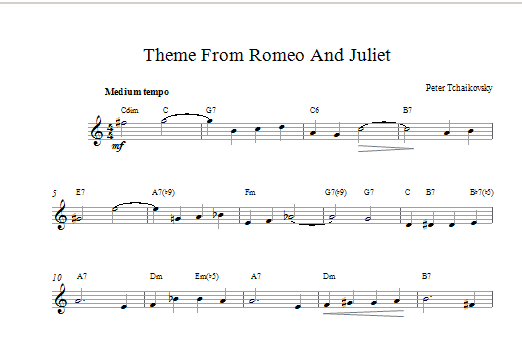 Download or print Pyotr Il'yich Tchaikovsky Romeo And Juliet sheet music, chords and digital score arranged for Piano Solo. This Classical score includes 3 page(s).
