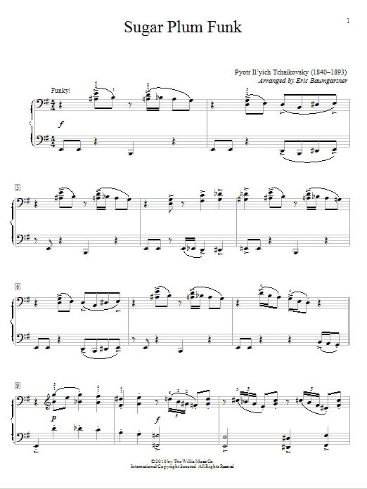Download or print Pyotr Il'yich Tchaikovsky Sugar Plum Funk sheet music, chords and digital score arranged for Educational Piano. This Classical score includes 5 page(s).