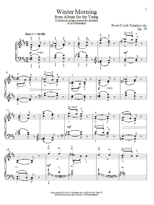 Download or print Pyotr Il'yich Tchaikovsky Winter Morning sheet music, chords and digital score arranged for Piano Solo. This Classical score includes 3 page(s).