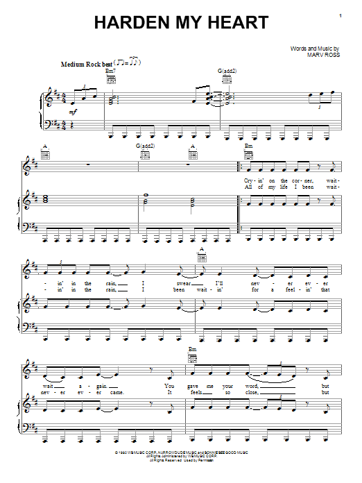 Download or print Quarterflash Harden My Heart sheet music, chords and digital score arranged for Piano, Vocal & Guitar Chords (Right-Hand Melody). This Pop score includes 3 page(s).