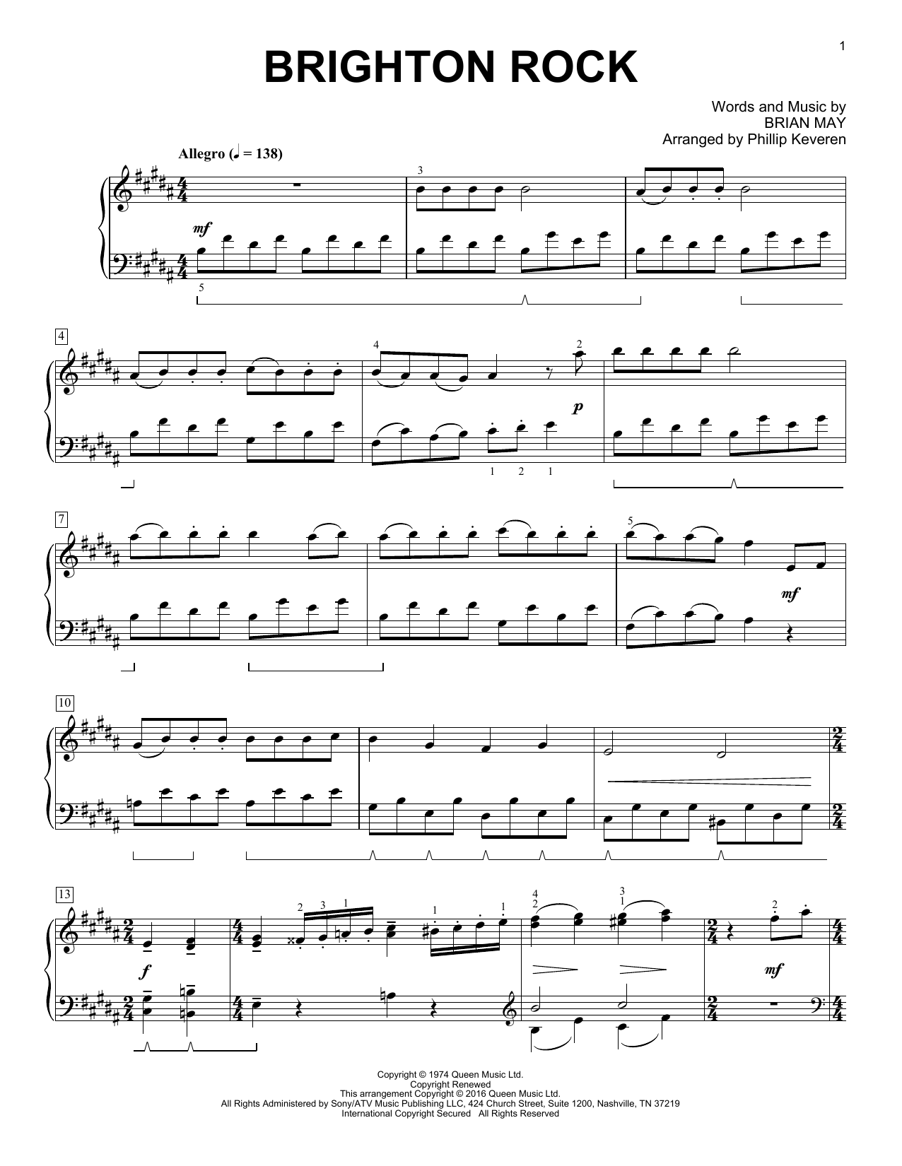 Download or print Queen Brighton Rock [Classical version] (arr. Phillip Keveren) sheet music, chords and digital score arranged for Piano Solo. This Pop score includes 3 page(s).