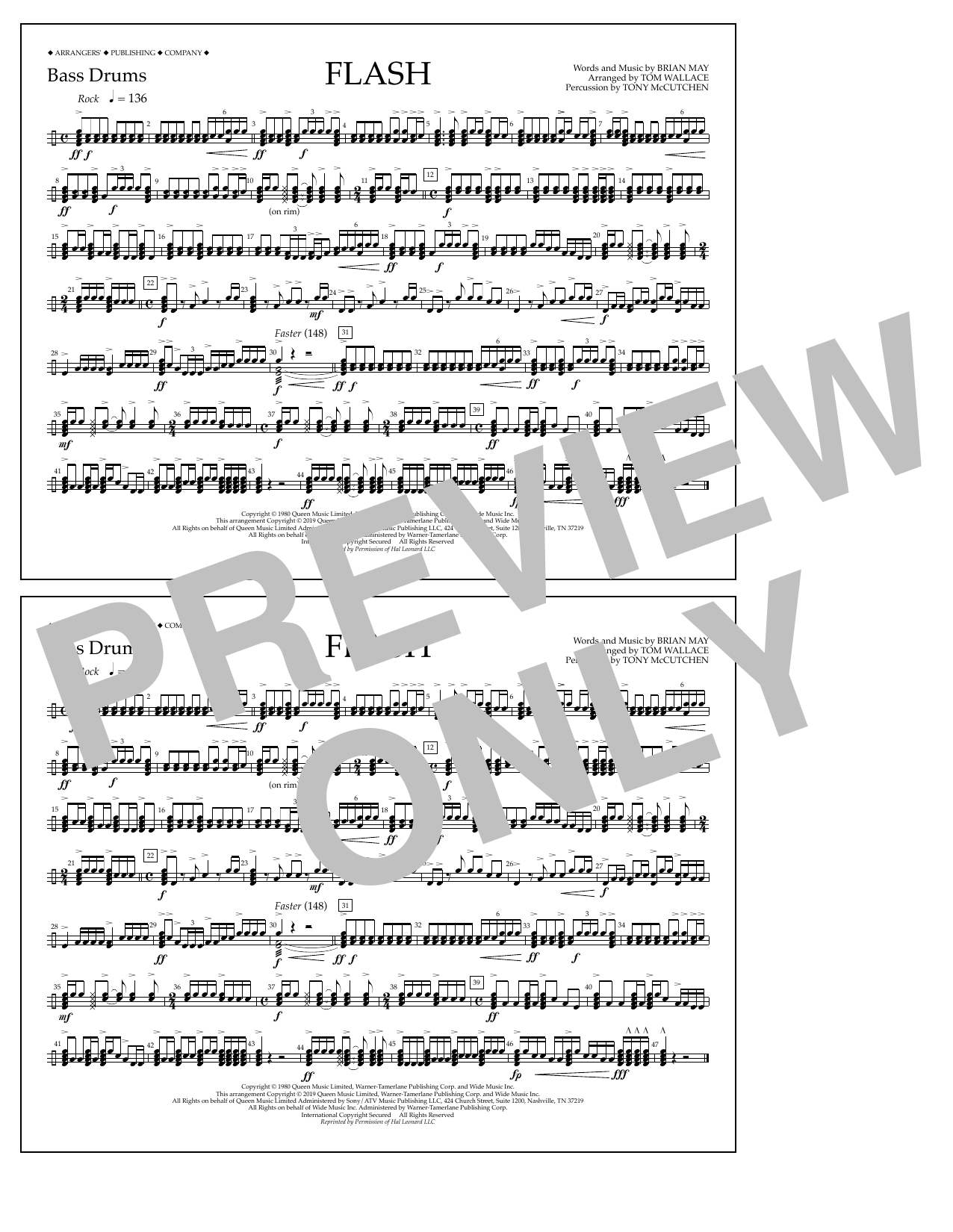 Download or print Queen Flash (arr. Tom Wallace) - Bass Drums sheet music, chords and digital score arranged for Marching Band. This Rock score includes 1 page(s).