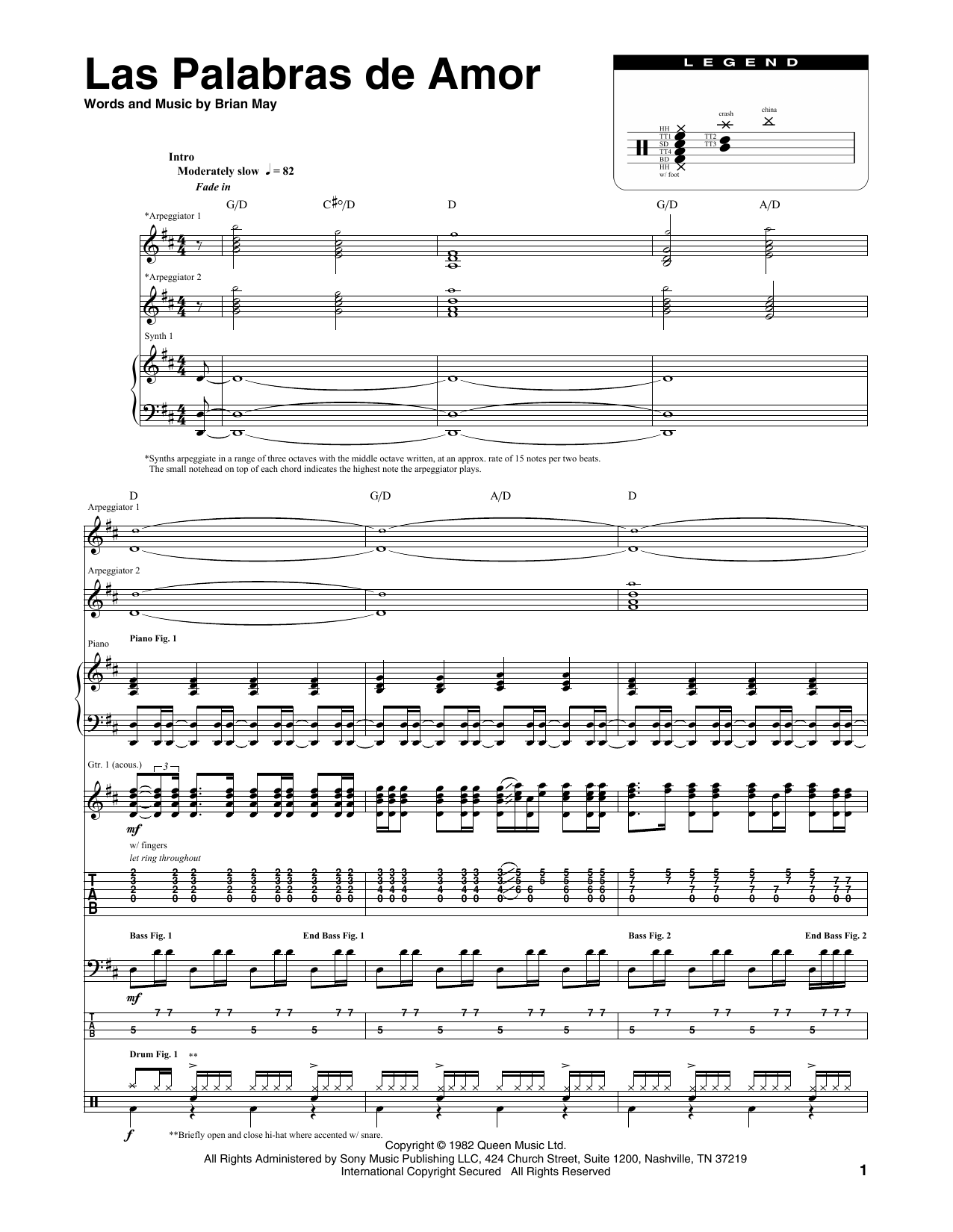 Download or print Queen Las Palabras De Amor sheet music, chords and digital score arranged for Transcribed Score. This Pop score includes 25 page(s).