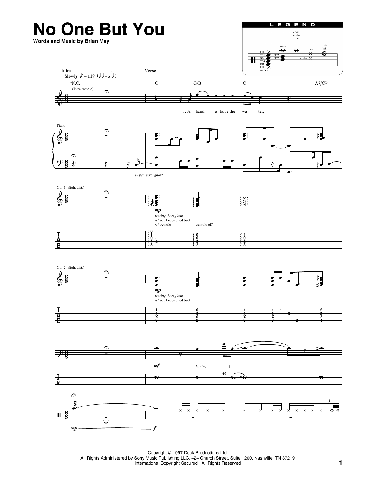 Download or print Queen No One But You sheet music, chords and digital score arranged for Transcribed Score. This Pop score includes 20 page(s).
