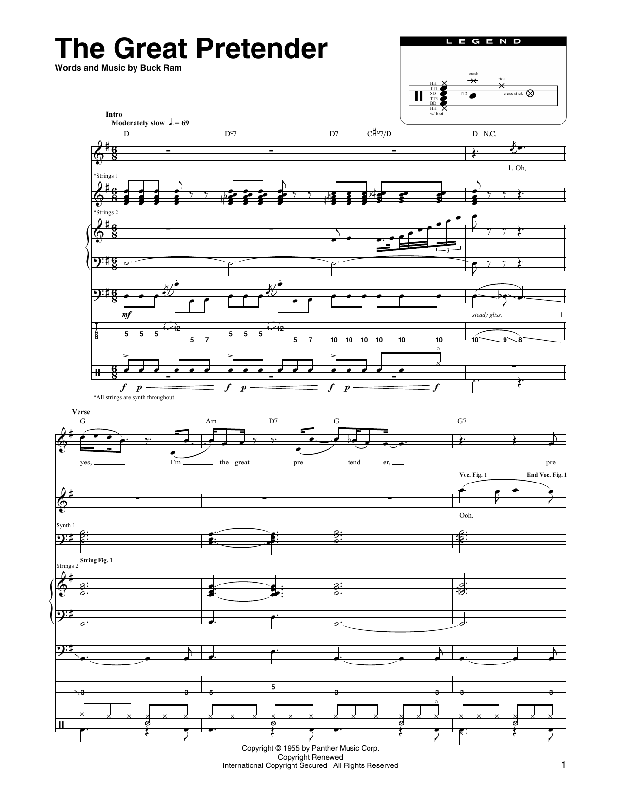 Download or print Queen The Great Pretender sheet music, chords and digital score arranged for Transcribed Score. This Pop score includes 13 page(s).