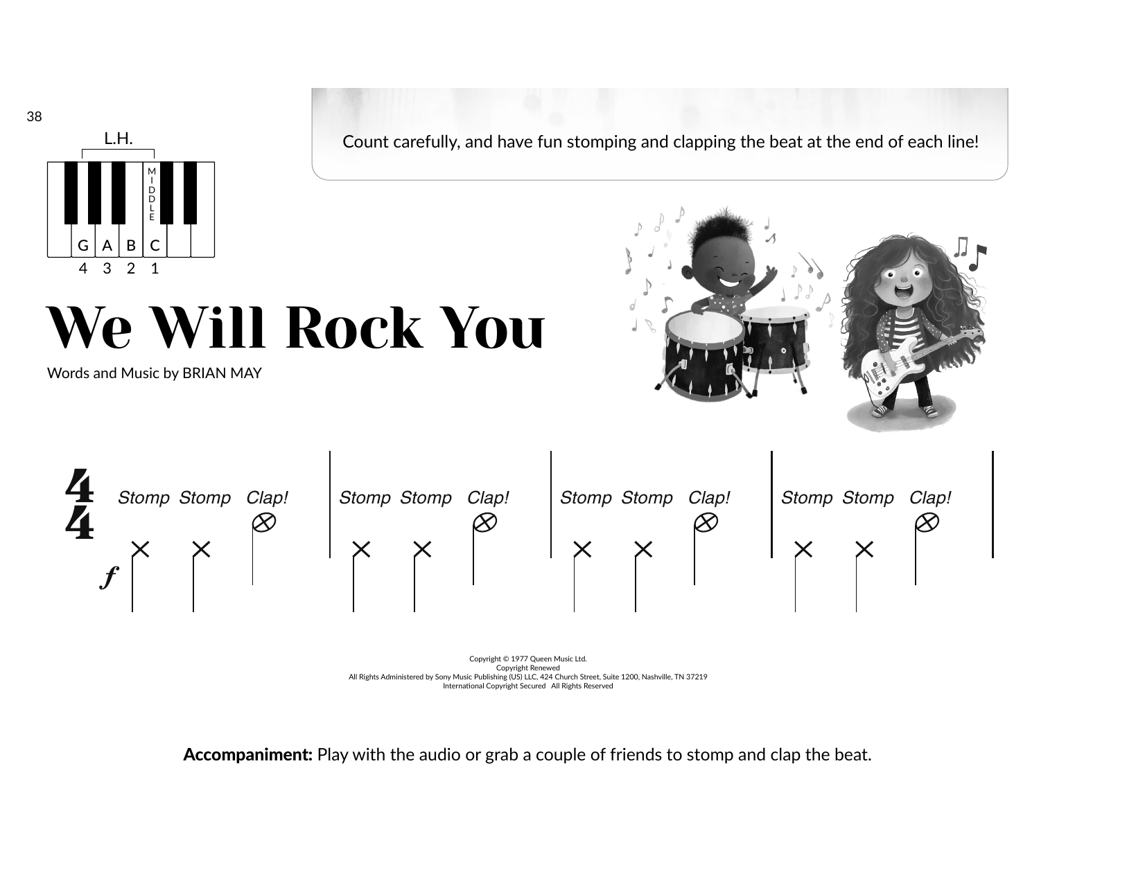 Download or print Queen We Will Rock You (arr. Brittany McCorriston) sheet music, chords and digital score arranged for Very Beginner Piano. This Rock score includes 2 page(s).