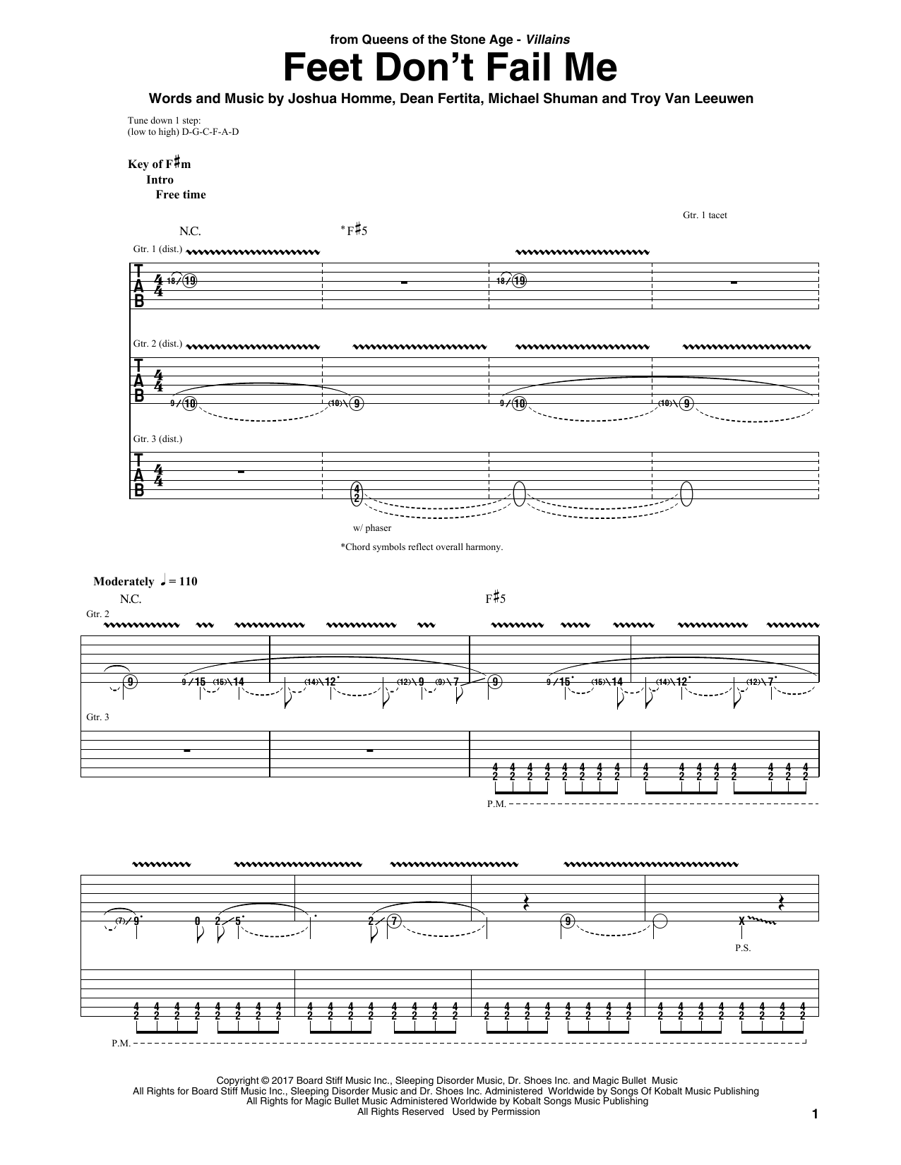 Download or print Queens Of The Stone Age Feet Don't Fail Me sheet music, chords and digital score arranged for Guitar Rhythm Tab. This Pop score includes 11 page(s).
