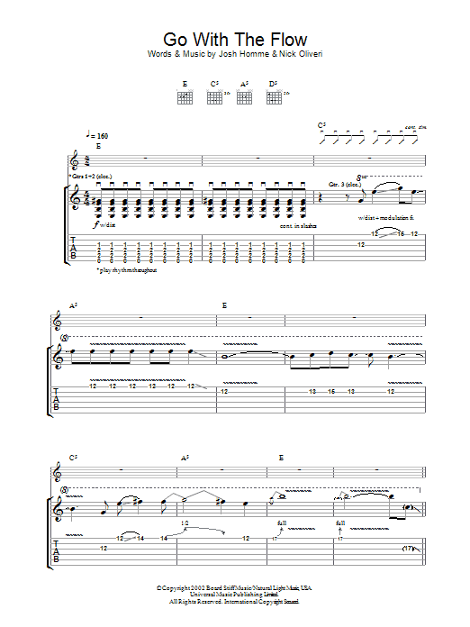 Download or print Queens Of The Stone Age Go With The Flow sheet music, chords and digital score arranged for Guitar Chords/Lyrics. This Rock score includes 2 page(s).