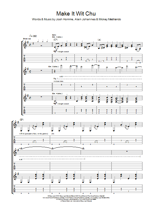 Download or print Queens Of The Stone Age Make It Wit Chu sheet music, chords and digital score arranged for Guitar Chords/Lyrics. This Rock score includes 2 page(s).