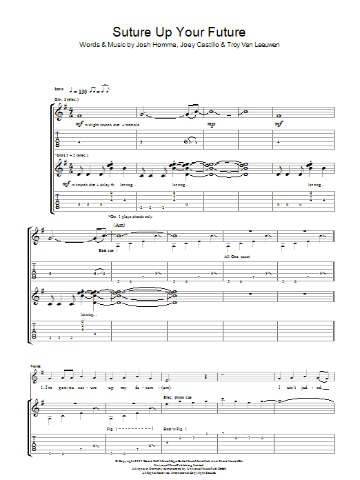 Download or print Queens Of The Stone Age Suture Up Your Future sheet music, chords and digital score arranged for Guitar Tab. This Metal score includes 8 page(s).