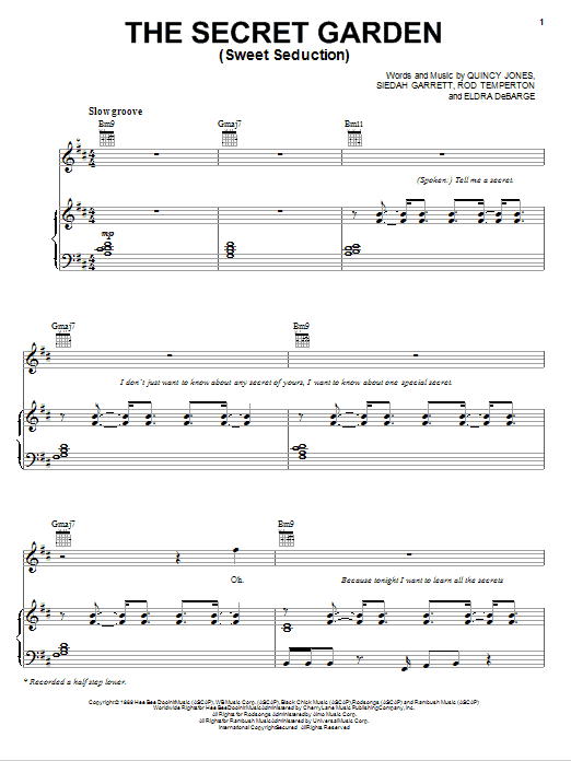 Download or print Quincy Jones The Secret Garden (Sweet Seduction) sheet music, chords and digital score arranged for Piano, Vocal & Guitar Chords (Right-Hand Melody). This Pop score includes 7 page(s).