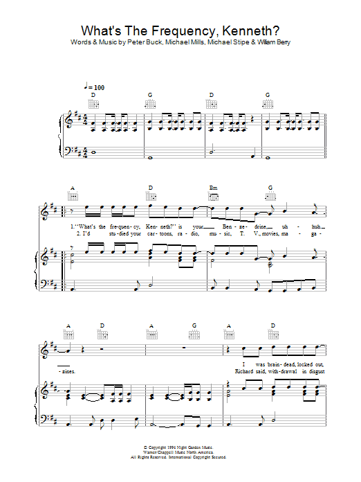 Download or print R.E.M. What's The Frequency, Kenneth? sheet music, chords and digital score arranged for Easy Guitar Tab. This Rock score includes 3 page(s).