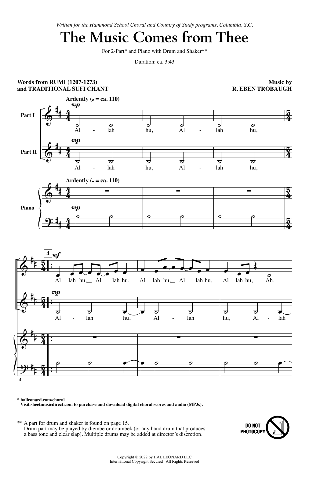Download or print R. Eben Trobaugh The Music Comes From Thee sheet music, chords and digital score arranged for 2-Part Choir. This Concert score includes 14 page(s).