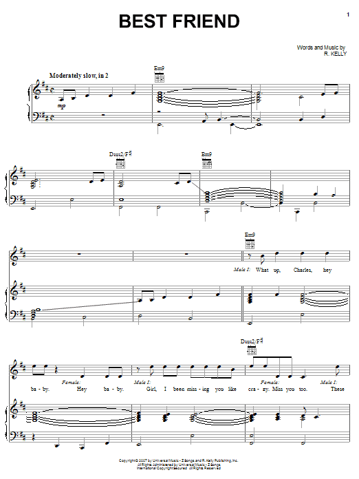 Download or print R Kelly Best Friend sheet music, chords and digital score arranged for Piano, Vocal & Guitar Chords (Right-Hand Melody). This Pop score includes 15 page(s).