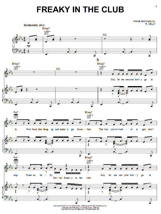 Download or print R Kelly Freaky In The Club sheet music, chords and digital score arranged for Piano, Vocal & Guitar Chords (Right-Hand Melody). This Pop score includes 11 page(s).