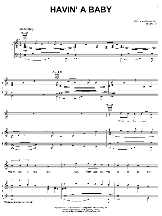 Download or print R Kelly Havin' A Baby sheet music, chords and digital score arranged for Piano, Vocal & Guitar Chords (Right-Hand Melody). This Pop score includes 11 page(s).