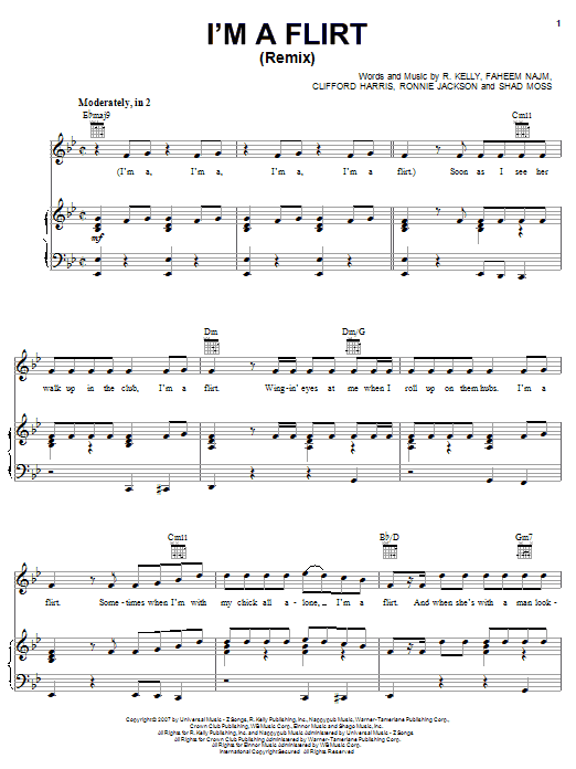 Download or print R Kelly I'm A Flirt Remix sheet music, chords and digital score arranged for Piano, Vocal & Guitar Chords (Right-Hand Melody). This Pop score includes 15 page(s).