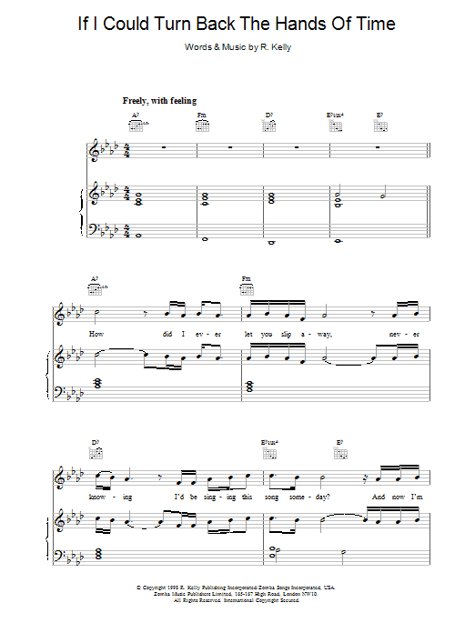 Download or print R. Kelly If I Could Turn Back The Hands Of Time sheet music, chords and digital score arranged for Piano Chords/Lyrics. This Pop score includes 2 page(s).