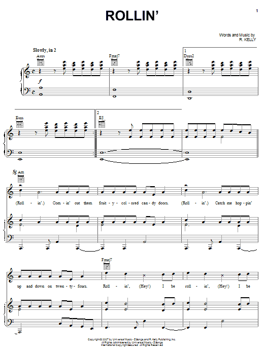 Download or print R Kelly Rollin' sheet music, chords and digital score arranged for Piano, Vocal & Guitar Chords (Right-Hand Melody). This Pop score includes 11 page(s).