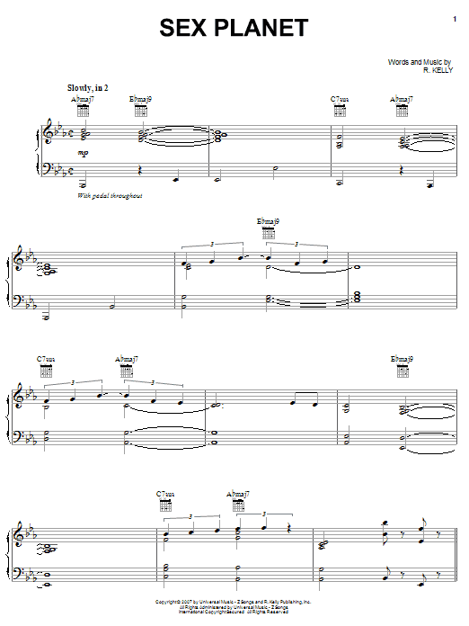Download or print R Kelly Sex Planet sheet music, chords and digital score arranged for Piano, Vocal & Guitar Chords (Right-Hand Melody). This Pop score includes 12 page(s).