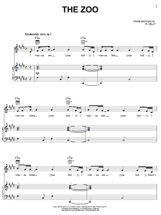 Download or print R Kelly The Zoo sheet music, chords and digital score arranged for Piano, Vocal & Guitar Chords (Right-Hand Melody). This Pop score includes 12 page(s).