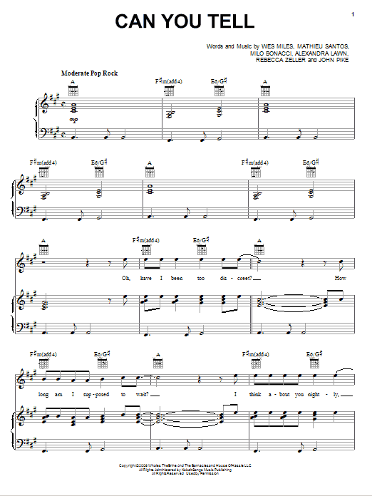 Download or print Ra Ra Riot Can You Tell sheet music, chords and digital score arranged for Piano, Vocal & Guitar Chords (Right-Hand Melody). This Film/TV score includes 8 page(s).