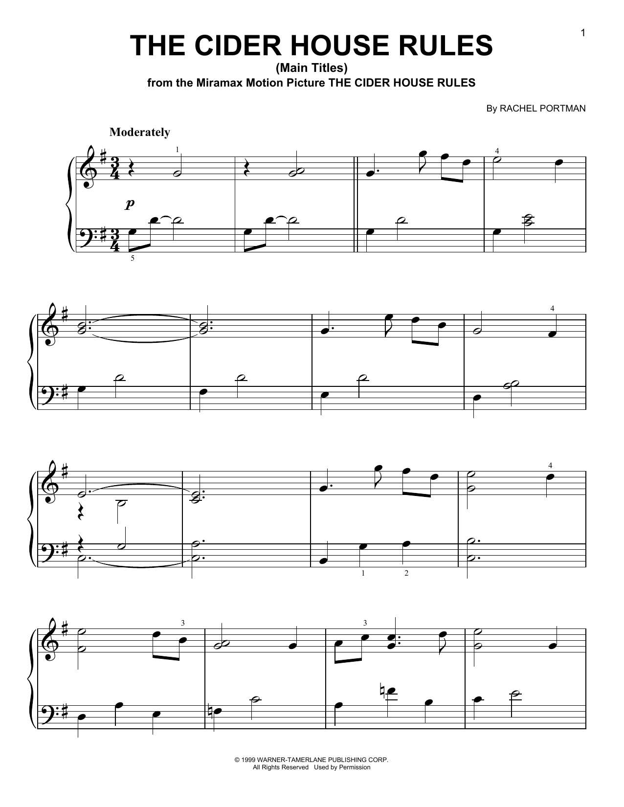 Download or print Rachel Portman The Cider House Rules (Main Titles) sheet music, chords and digital score arranged for Easy Piano. This Film/TV score includes 3 page(s).