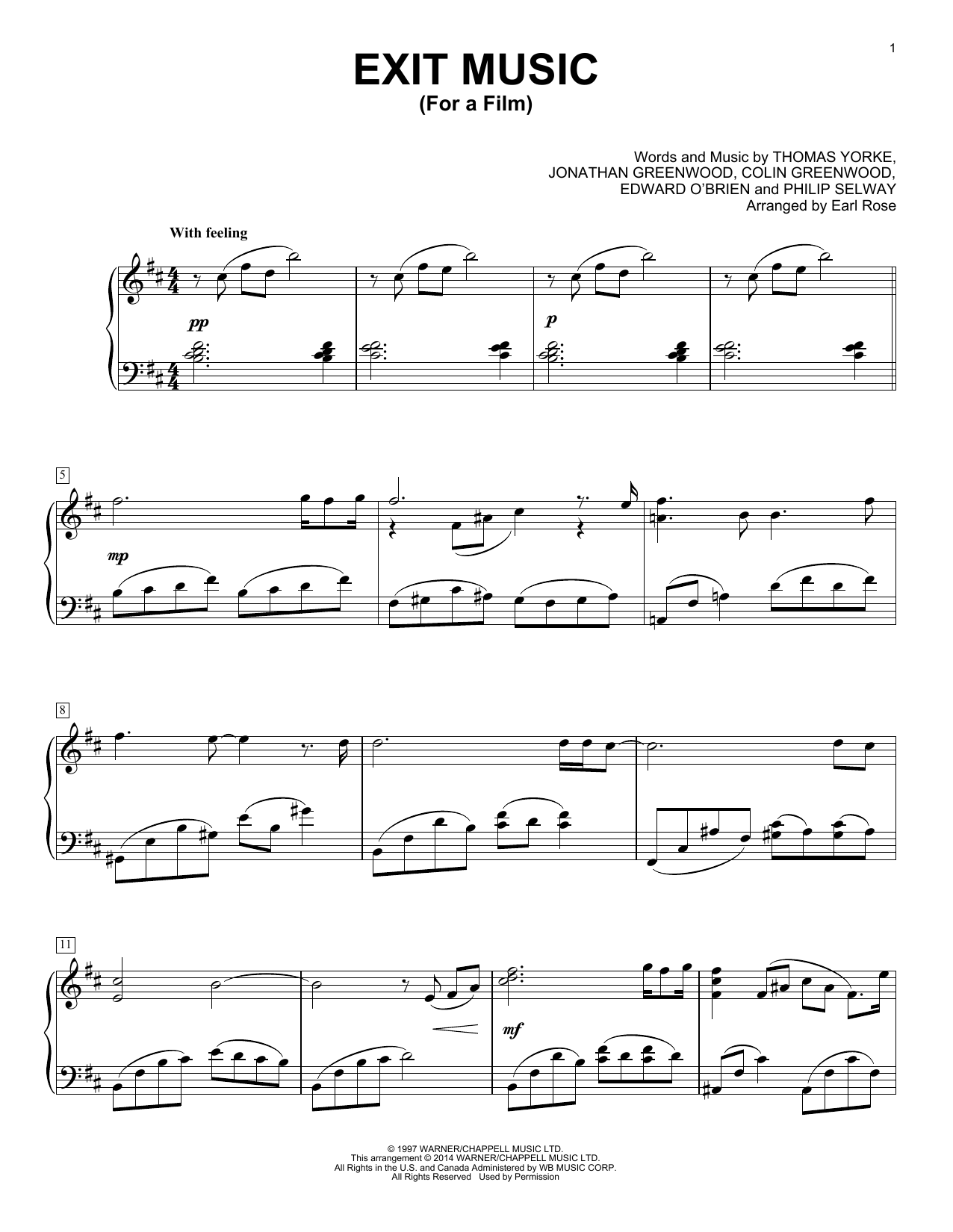 Quick facts Exit Music (For A Film) about digital sheet music