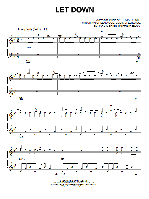 Download or print Radiohead Let Down sheet music, chords and digital score arranged for Piano Solo. This Rock score includes 7 page(s).
