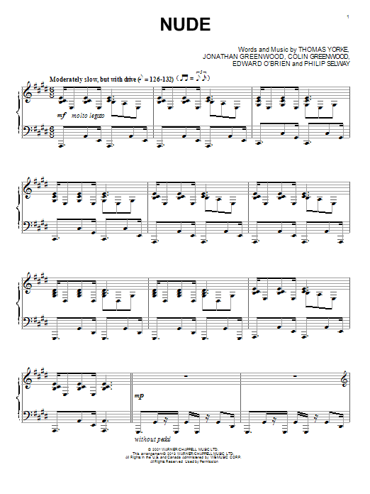 Download or print Radiohead Nude sheet music, chords and digital score arranged for Piano Solo. This Pop score includes 6 page(s).