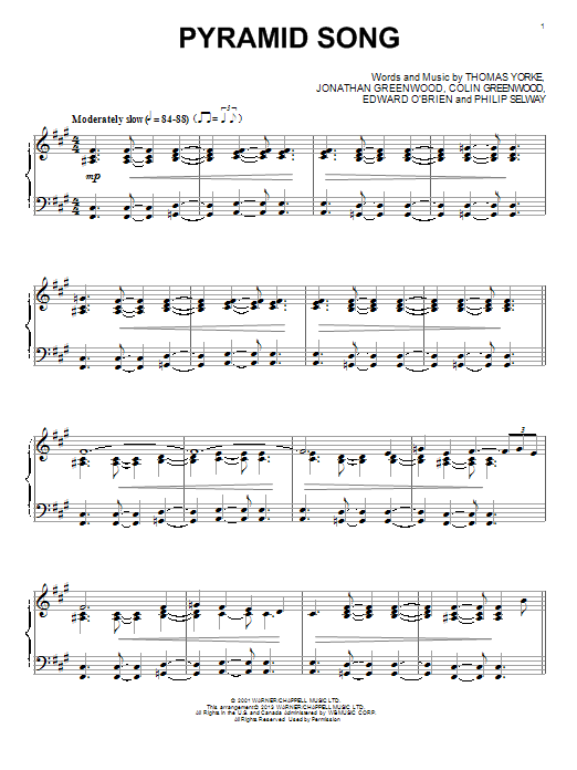 Quick facts Pyramid Song about digital sheet music