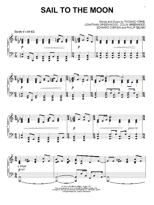 Download or print Radiohead Sail To The Moon sheet music, chords and digital score arranged for Piano Solo. This Pop score includes 4 page(s).
