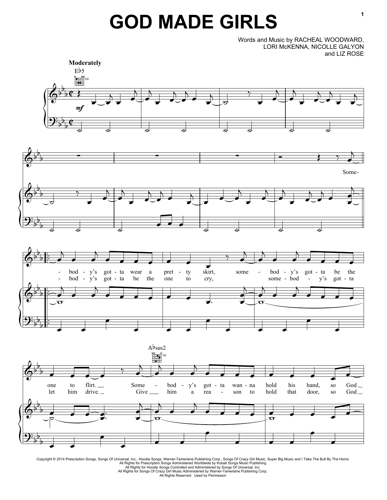 Download or print RaeLynn God Made Girls sheet music, chords and digital score arranged for Piano, Vocal & Guitar Chords (Right-Hand Melody). This Pop score includes 6 page(s).