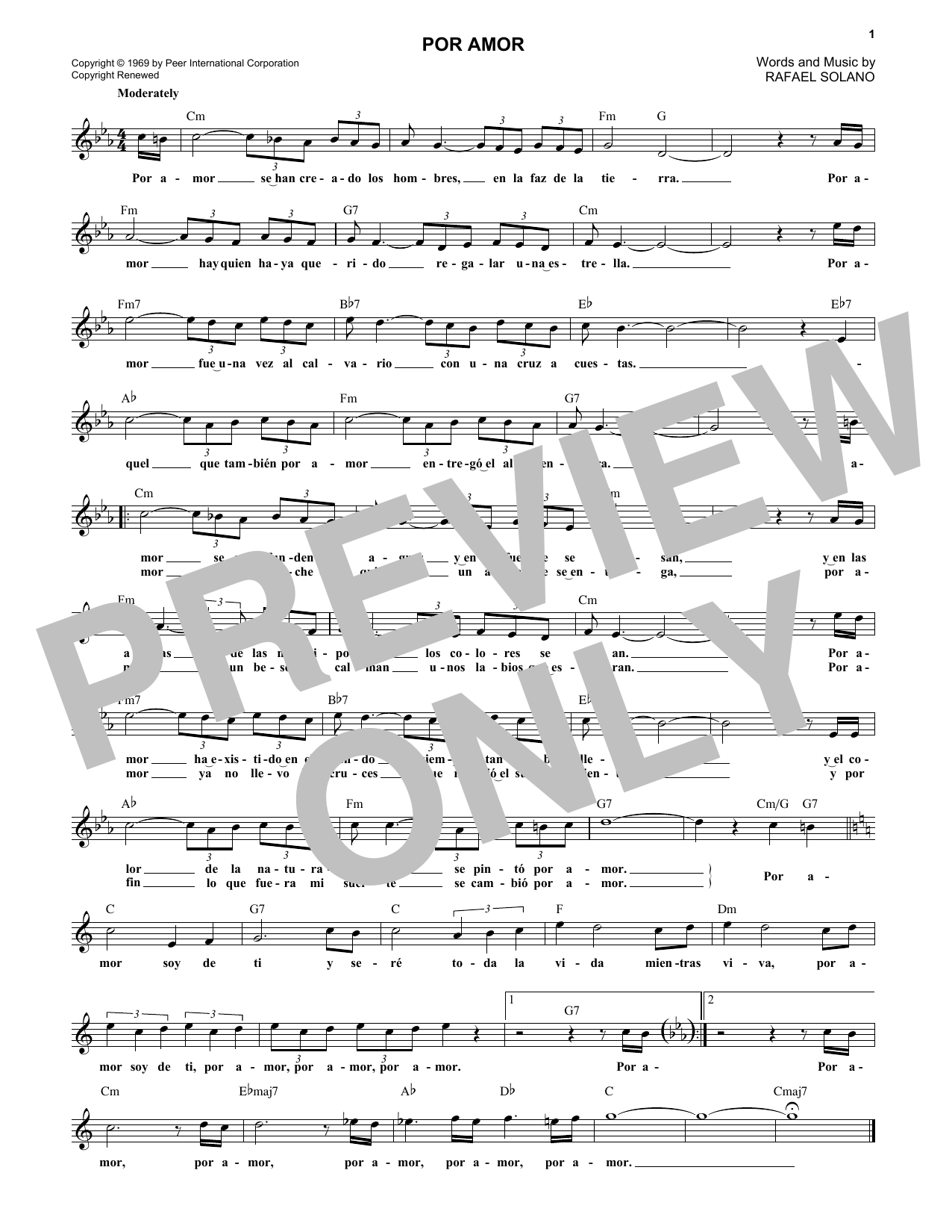 Download or print Rafael Solano Por Amor sheet music, chords and digital score arranged for Lead Sheet / Fake Book. This Jazz score includes 1 page(s).