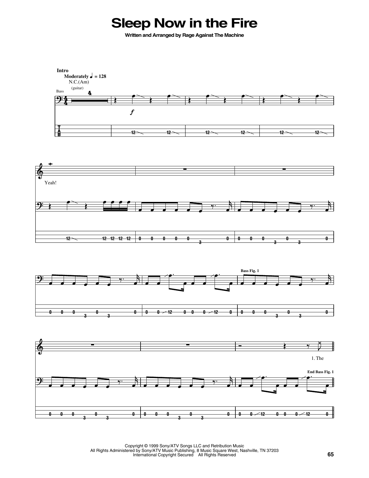 Download or print Rage Against The Machine Sleep Now In The Fire sheet music, chords and digital score arranged for Bass Guitar Tab. This Rock score includes 4 page(s).