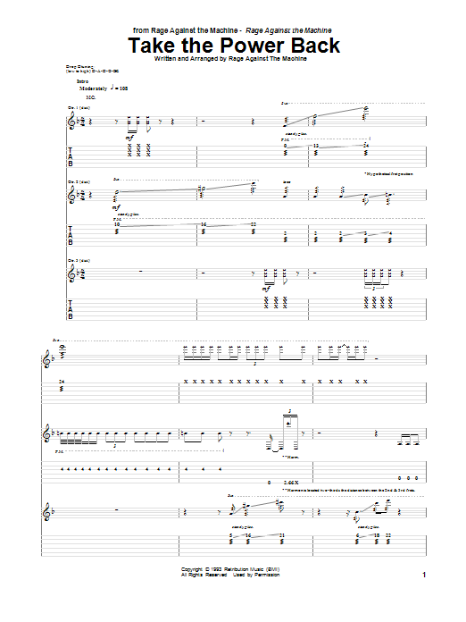 Download or print Rage Against The Machine Take The Power Back sheet music, chords and digital score arranged for Bass Guitar Tab. This Rock score includes 6 page(s).